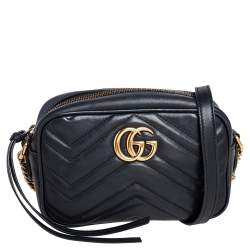 Gucci Black Matelassé Leather GG Marmont Wallet On Chain