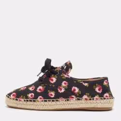 Prada Multicolor Canvas Lace Up Floral Print Espadrilles Size 37