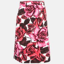 Prada Pink Floral Printed Cotton A-Line Midi Skirt S