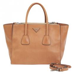 Prada Caramel Saffiano Lux Leather Large Double Zip Tote