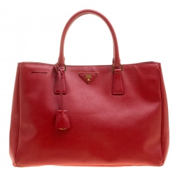 Prada Red Saffiano Lux Leather Double Zip Tote