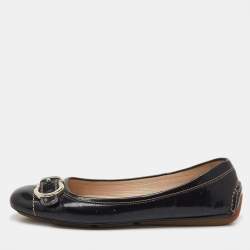 Salvatore Ferragamo Two Tone Patent Leather And Lizard Embossed Leather Cap Toe Vara Bow Ballet Flats Size 37.5