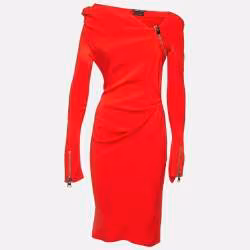 Tom Ford Red Silk Draped Zip Detail Short Dress S