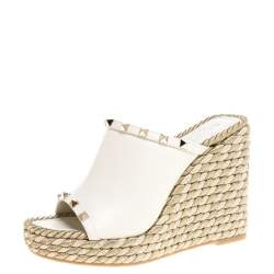 Valentino Beige Leather Rockstud Flat Sandals Size 38
