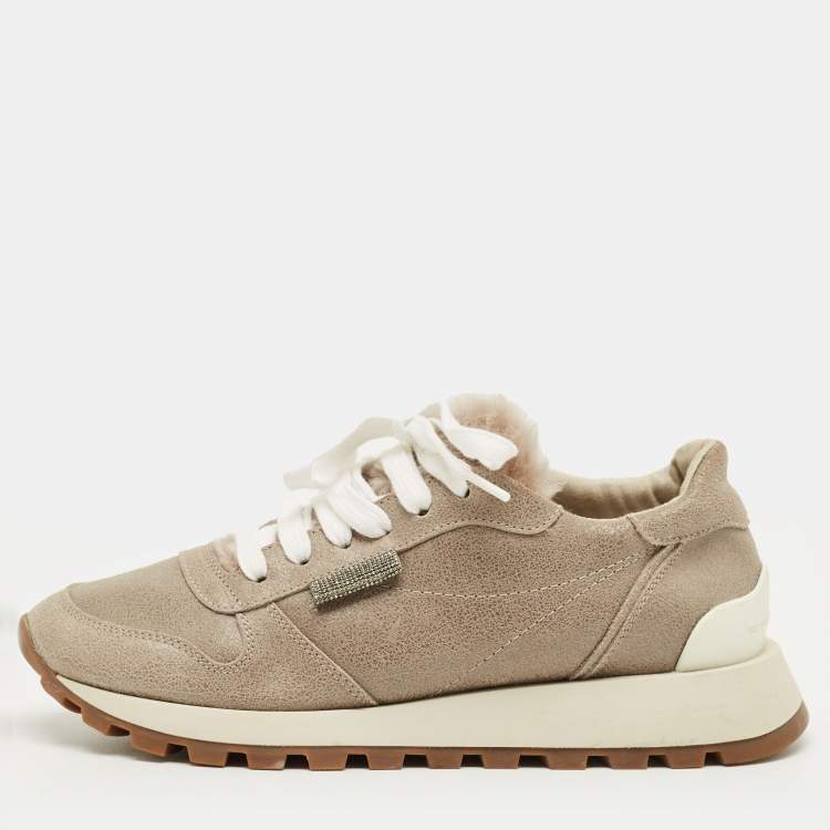 Brunello Cucinelli Grey Leather Lace Up Sneakers Size 35.5