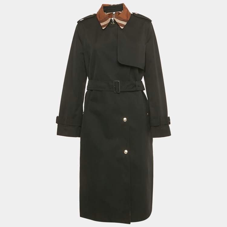 Burberry Black Checkered Print Collar Detail Cotton Sandridge Trench Coat L