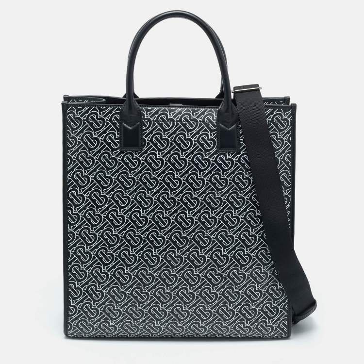 Burberry Black/White TB Logo Leather Vertical Denny Tote