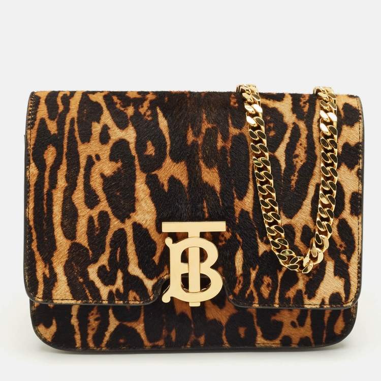 Burberry Brown Leopard Print Calf Hair Small TB Shoulder Bag