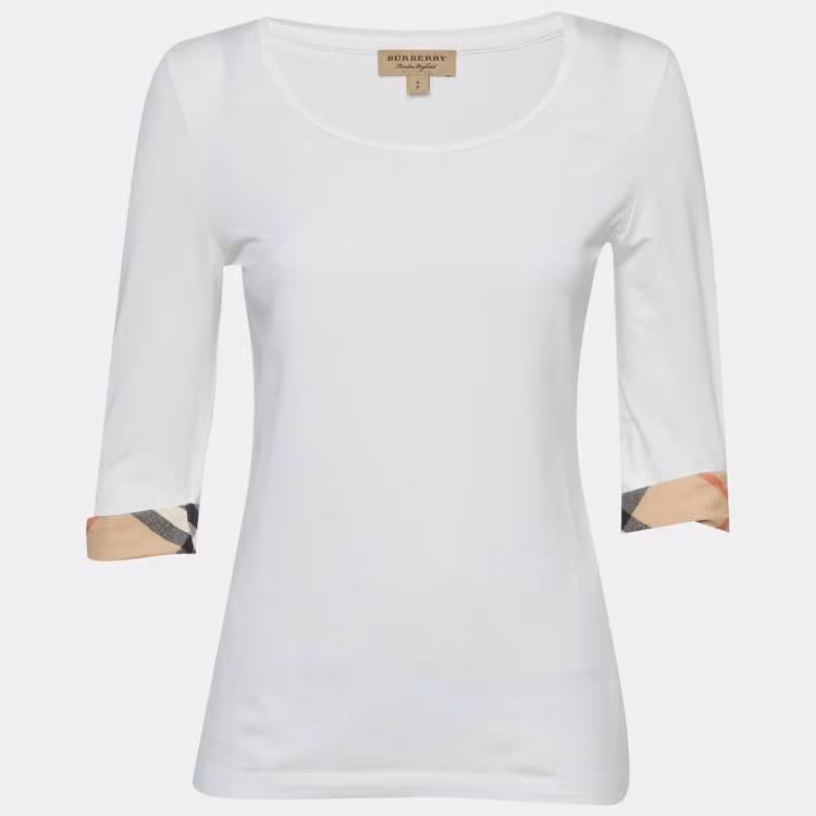 Pre Owned Burberry White Nova Check Jersey Scoop Neck Top S