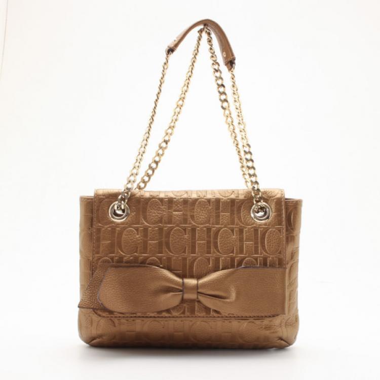 Pre Owned Carolina Herrera 'Audrey' Bronze Monogram Embossed Bag