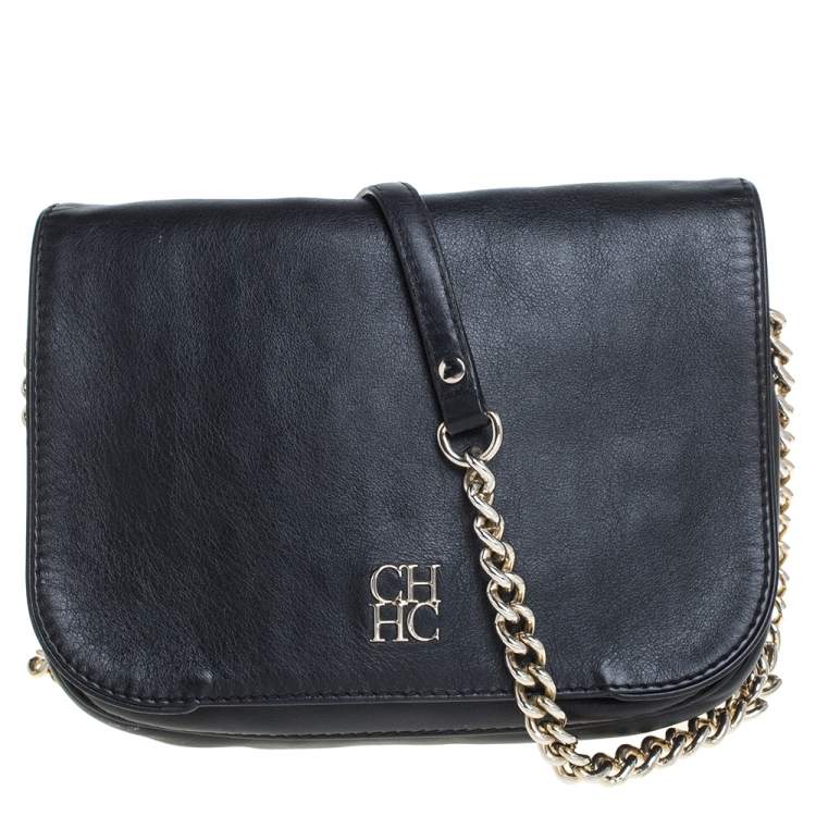 Pre Owned Carolina Herrera Black Leather New Baltazar Flap Shoulder Bag