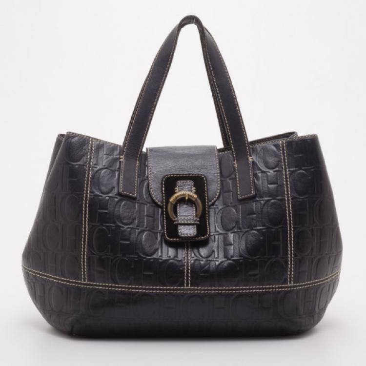 Pre Owned Carolina Herrera Black Monogram Embossed Tote