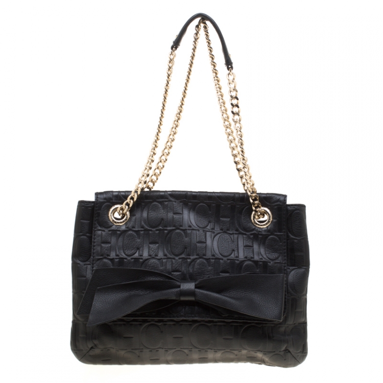 Pre Owned Carolina Herrera Black Monogram Leather Audrey Shoulder Bag