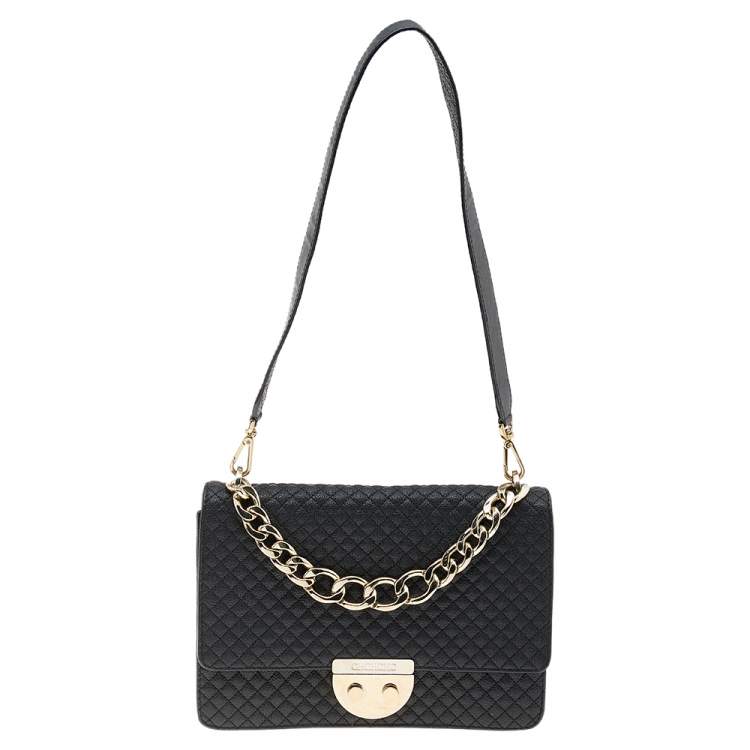 Carolina Herrera Black Quilted Textured Leather Flap Shoulder Bag