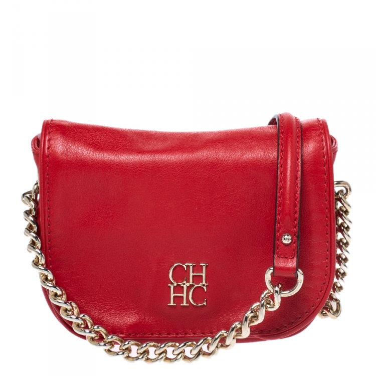 Carolina Herrera Red Leather Flap Crossbody Bag
