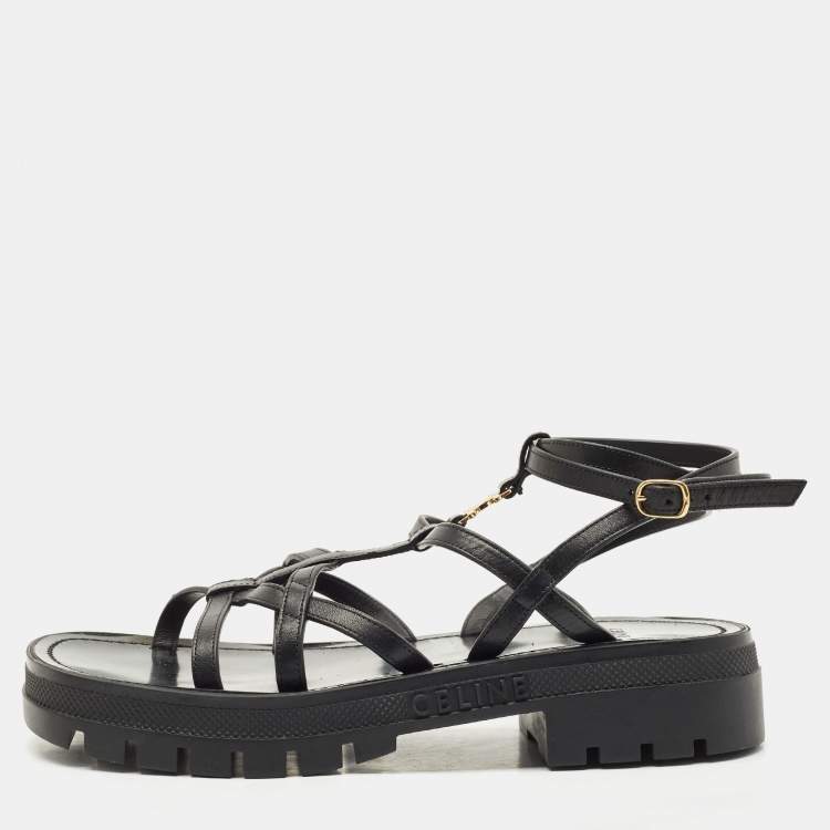 Pre Owned Celine Black Leather Clea Triomphe Strappy Sandals Size 38
