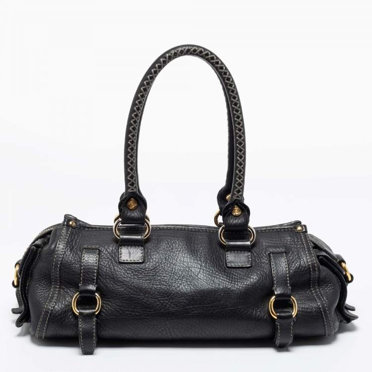 Celine Black Leather Whipstitch Handle Satchel