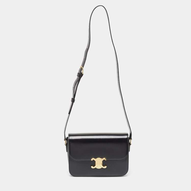 Celine Black Shine Leather Medium Triomphe Shoulder Bag