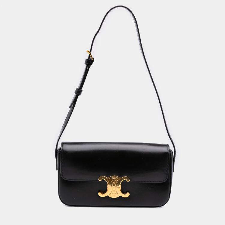 Celine Black Shiny Calfskin Claude Shoulder Bag