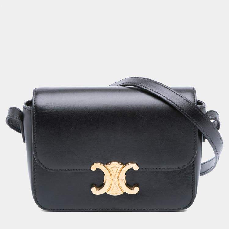 Celine Black Teen Shiny Calfskin Triomphe Crossbody