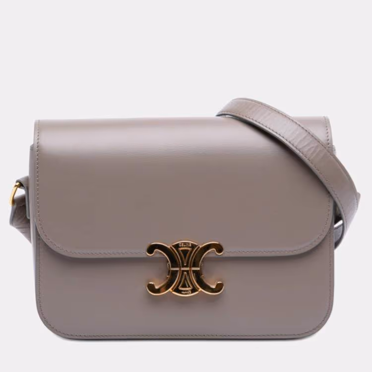 Pre Owned Celine Brown Classique Shiny Calfskin Triomphe Crossbody