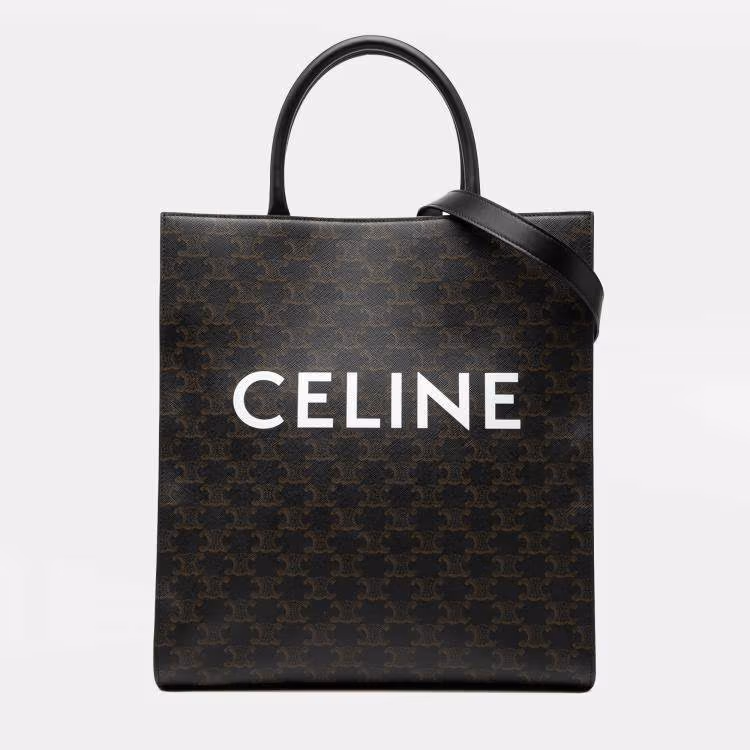 Celine Brown Medium Triomphe Coated Canvas Vertical Cabas Tote