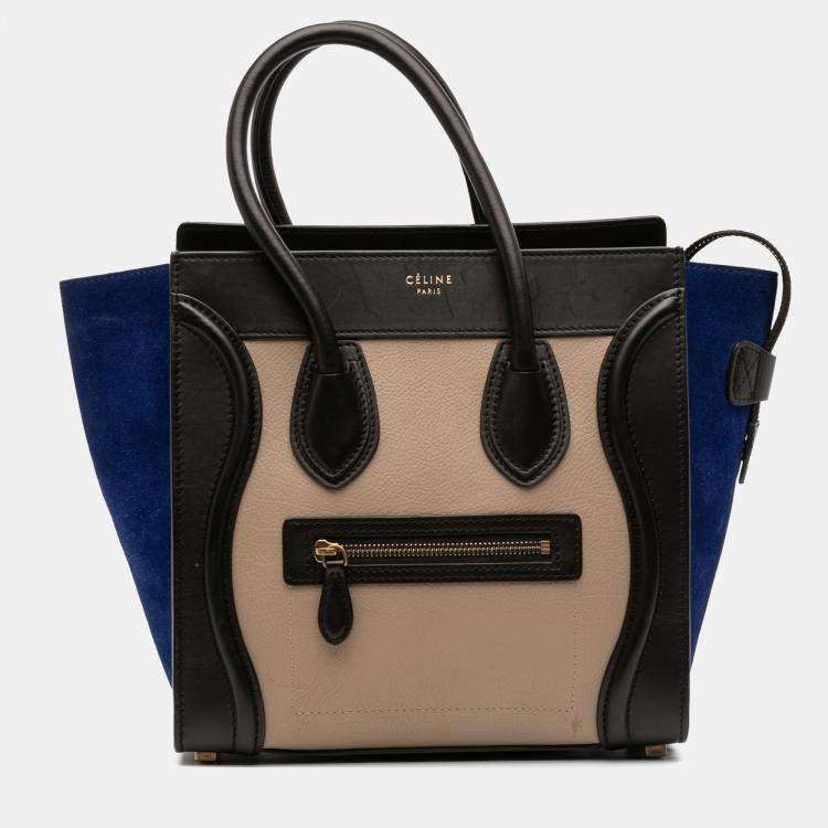 Pre Owned Celine Brown Micro Tricolor Leather Luggage Tote