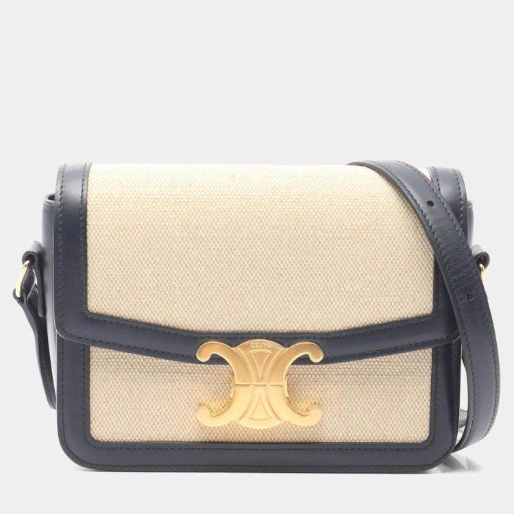 Celine Teen Triomphe Shoulder Bag Canvas And Leather Beige/Navy