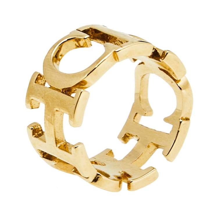 Pre Owned CH Carolina Herrera Gold Tone Between the Line Ring EU 54