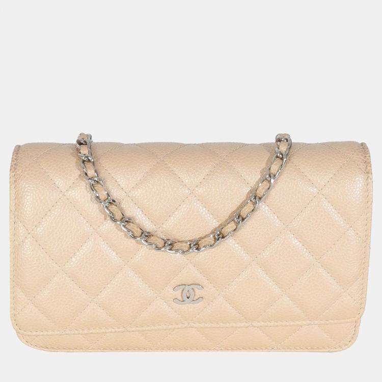 Chanel 15C Beige Quilted Caviar Classic Wallet On Chain