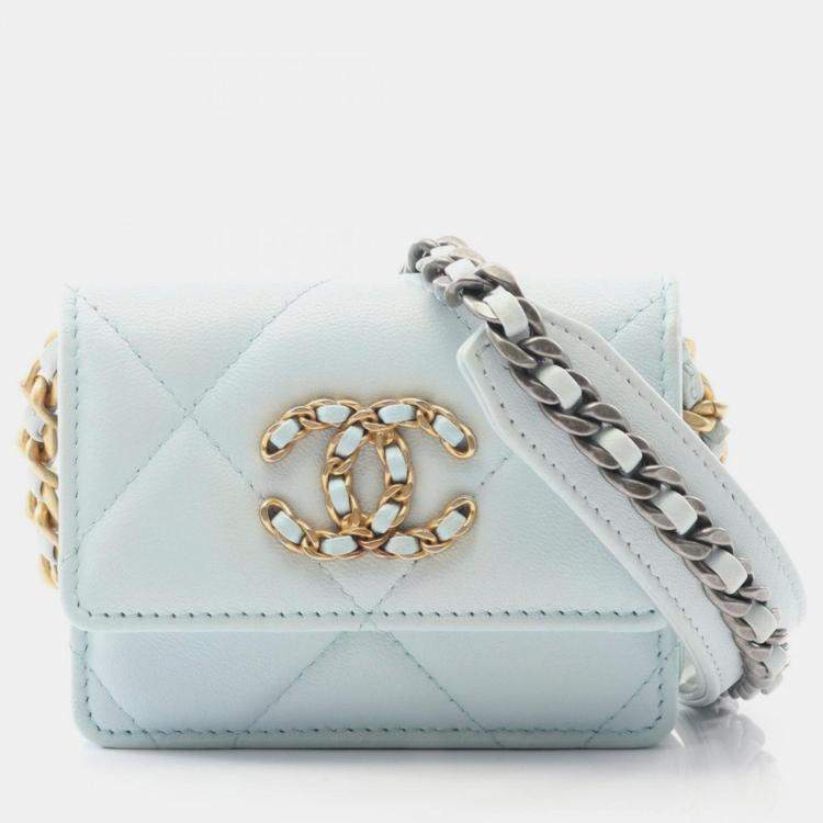 Pre Owned Chanel 19 Matelasse Shoulder Bag Lambskin Leather Blue
