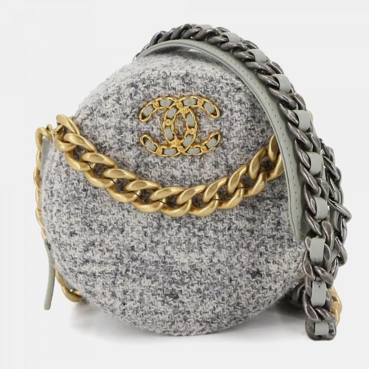 Chanel 19 Round Clutch Chain Shoulder Bag In Tweed And Leather Gray