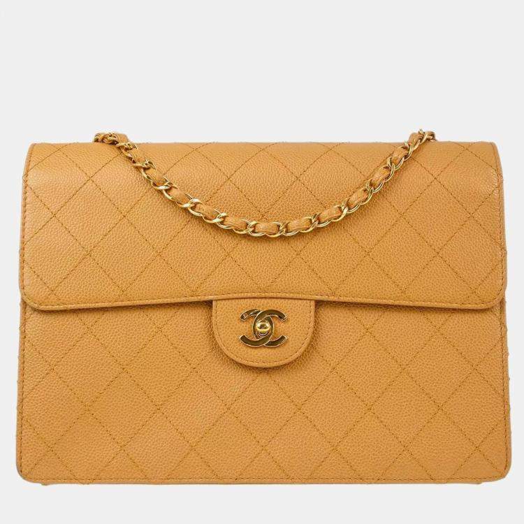 Chanel Beige Calfskin Single Flap Shoulder Bag