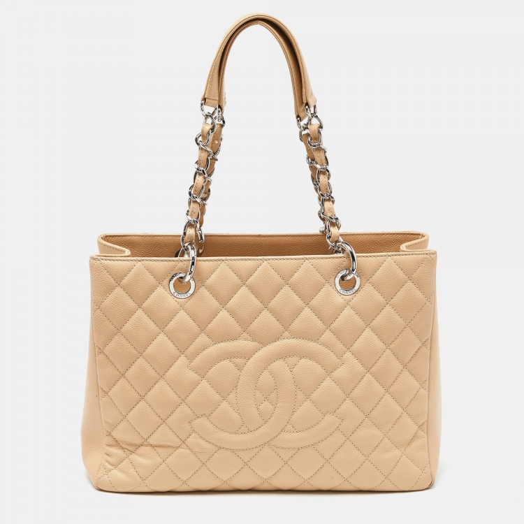 Chanel Beige Quilted Caviar Leather GST Shopper Tote