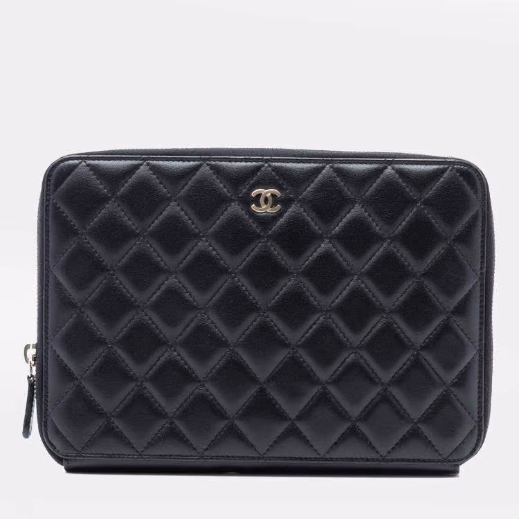 Chanel Black CC Grained Calfskin Classic Zipped Travel Pouch