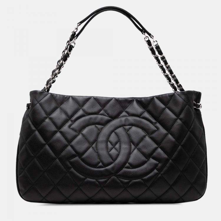 Pre Owned Chanel Black CC Quilted Caviar Expandable Tote