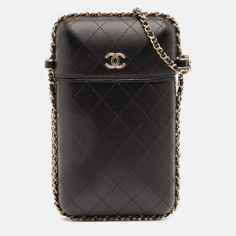 Chanel Black CC Quilted Lambskin Chain Around Phone Holder