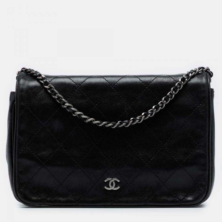 Chanel Black CC Quilted Lambskin Full Flap Wallet on Chain