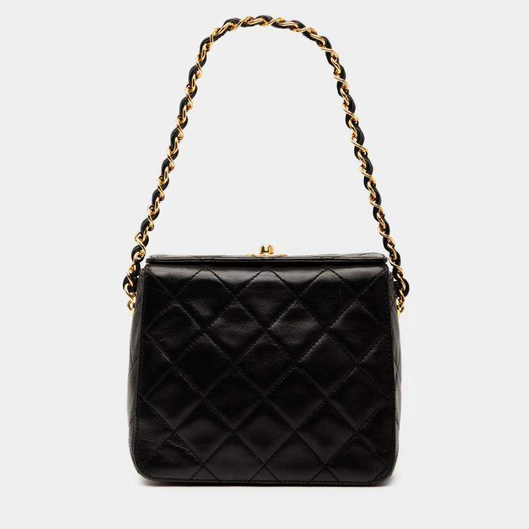 Chanel Black CC Quilted Lambskin Turnlock Handbag