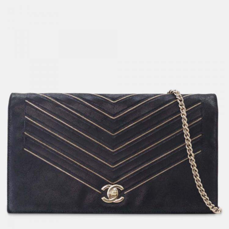 Chanel Black Chevron Nubuck Micro Chain Embellished Flap