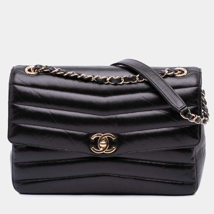 Chanel Black Chevron Shiny Lambskin Miroir Flap