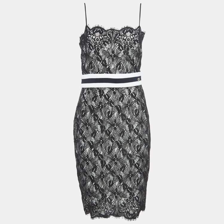 Pre Owned Chanel Black Floral Lace Mini Sleeveless Dress M