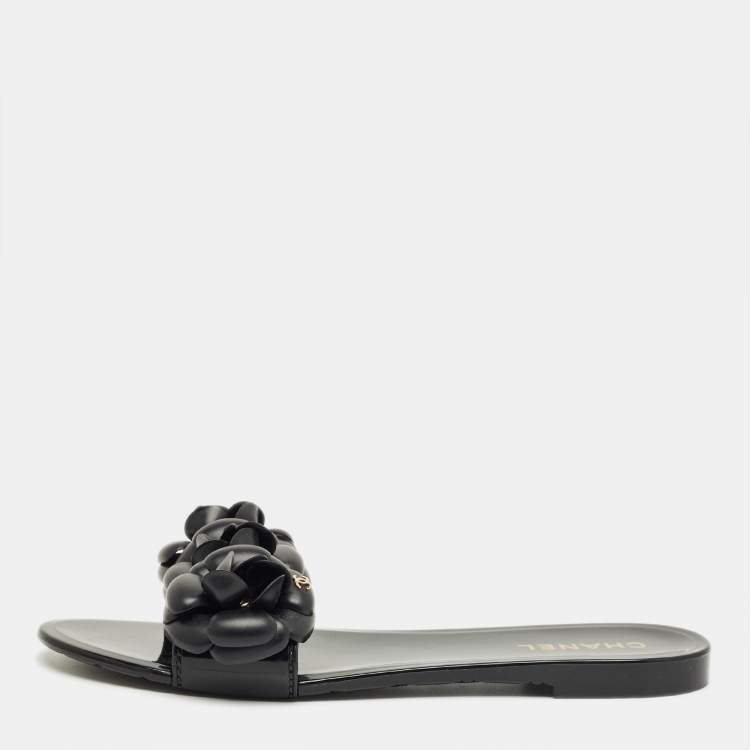 Chanel Black Jelly Flower Embellished Camellia Flat Slides Size 39