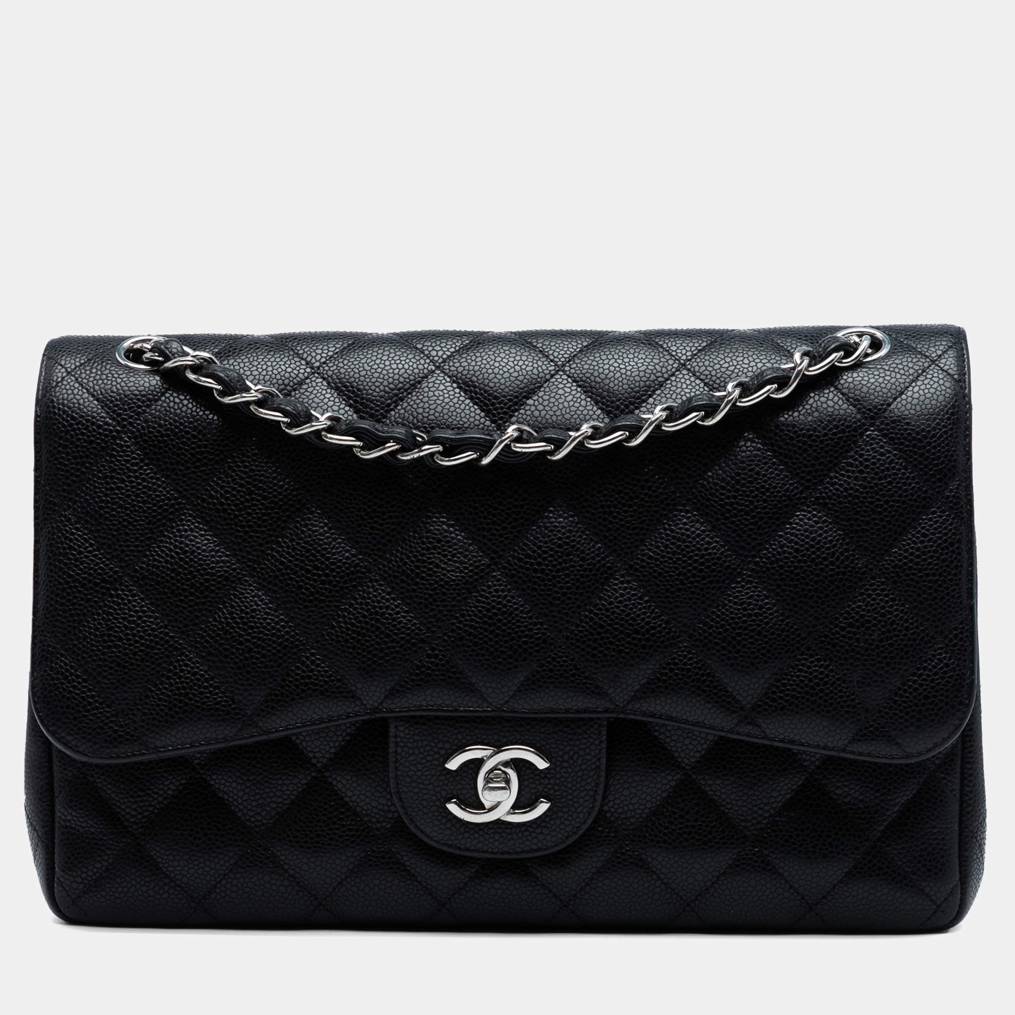 Pre Owned Chanel Black Jumbo Classic Caviar Double Flap