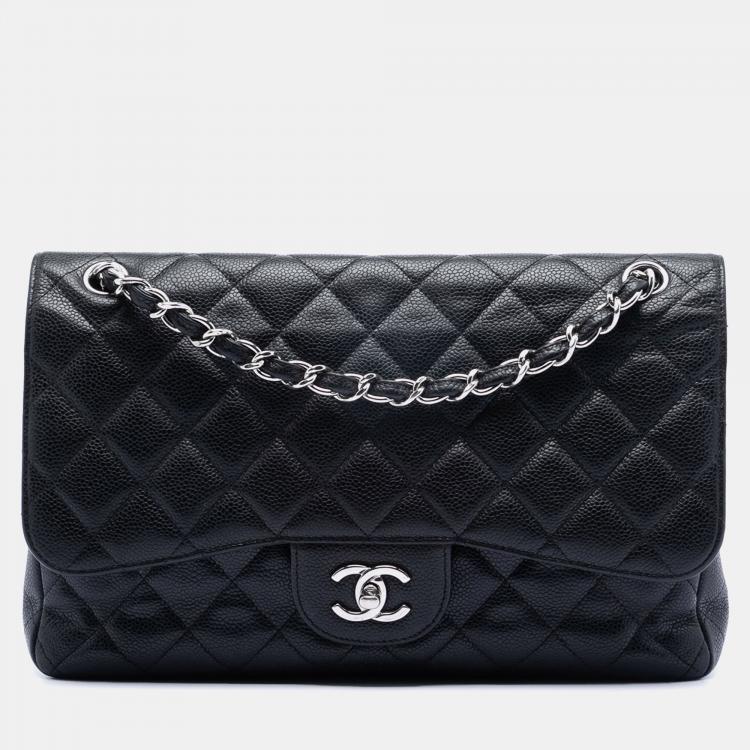 Pre Owned Chanel Black Jumbo Classic Caviar Double Flap