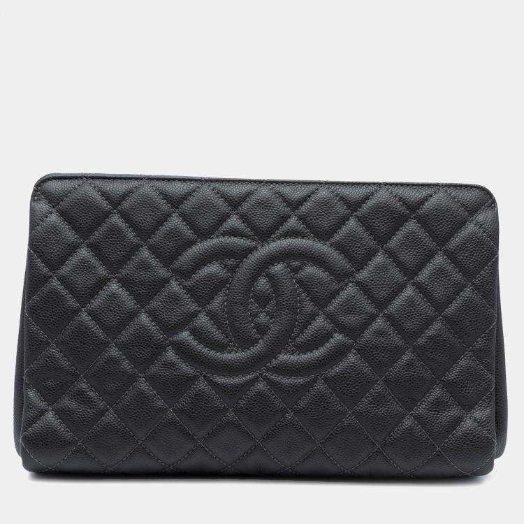 Pre Owned Chanel Black Large CC Quilted Caviar CC Clutch