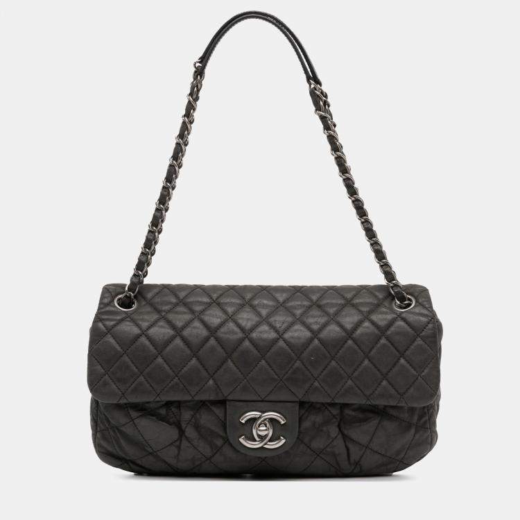 Pre Owned Chanel Black Large Iridescent Quilted Calfskin Coco Pleats Flap