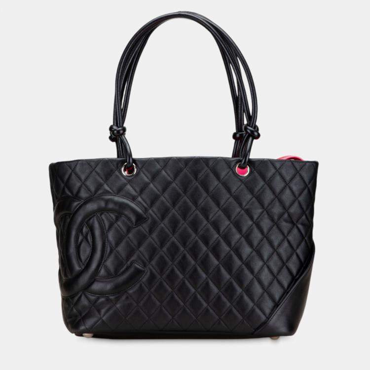 Pre Owned Chanel Black Large Quilted Calfskin Cambon Ligne Tote