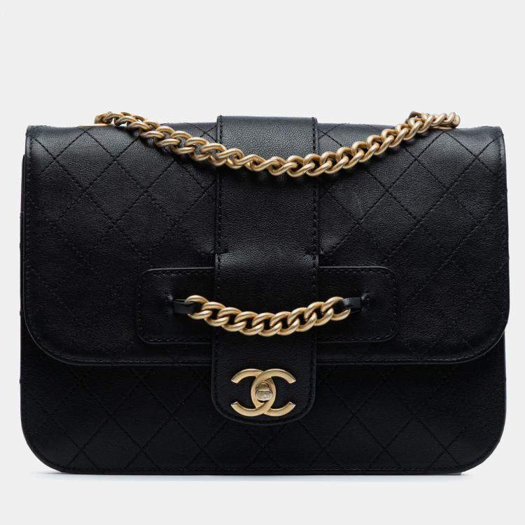 Chanel Black Large Quilted Sheepskin Front Chain Flap