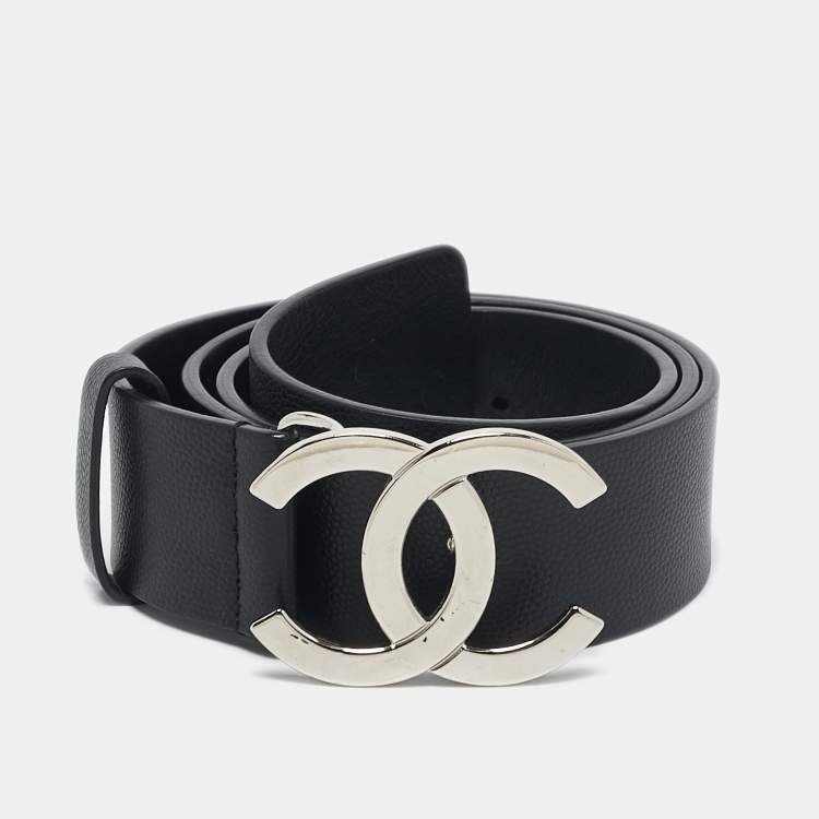 Pre Owned Chanel Black Leather CC Buckle Belt 75CM